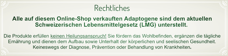 Adaptogene, die dem Heilmittelgesetz unterstellt sind, werden bei Zimmerli Adaptogene nicht verkauft.